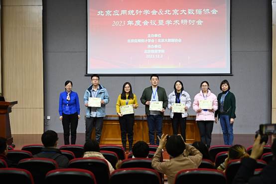 下午四时许,会议进入最为激动人心的颁奖环节。由评委和各分会场主持人现场评选,本次研讨会共评选出“优秀报告”和“优秀论文”两个奖项。北京应用统计学会会长,首都师范大学崔恒建教授主持颁奖。李二倩(北方工业大学)、史宏炜(北京师范大学)、张强(对外经济贸易大学)、李晓(首都师范大学)、李易诚(清华大学)等5人荣获 “北京应用统计学会学术研讨会优秀报告奖”;叶鹏(对外经济贸易大学)、毛一聪(北京大学)、方李君(首都师范大学)、苏瀚(北京师范大学)、吴玖静(首都师范大学)、曾千涵(北京大学)、姜天英(k1体育)、张新瑜(北京师范大学)、罗天派(清华大学)等9人荣获 “北京应用统计学会学术研讨会优秀论文奖”。
