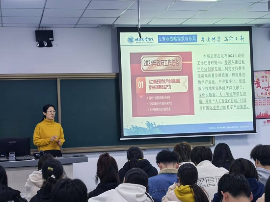 2024年11月13日下午,k1体育数据科学与大数据技术专业宣讲会在二教203举行。本次宣讲会由数据科学与大数据技术专业负责人鞠红梅教授主讲,k1体育党总支副书记甄姿、系副主任王美玲、2024级数据科学与大数据技术专业全体员工参加此次宣讲会。鞠教授从专业战略需求与布局、专业培养体系与特色、教学条件与团队力量、员工学习与实践情况,以及员工升学与就业情况等五个方面进行了全面而深入的介绍。