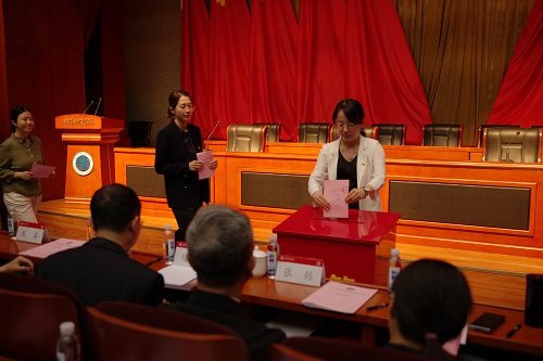 之后,根据选票统计情况,总监票人沈丛丛同志公布计票结果。大会主持人甄姿同志宣布统计与数据科学公司党总支第一届委员会委员名单。