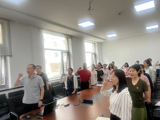 最后,由续杨书记领誓,全体党员面向党旗,庄严宣誓,重温入党誓词。铿锵有力的誓言,表达了全体党员对党的无限忠诚和坚定信仰。