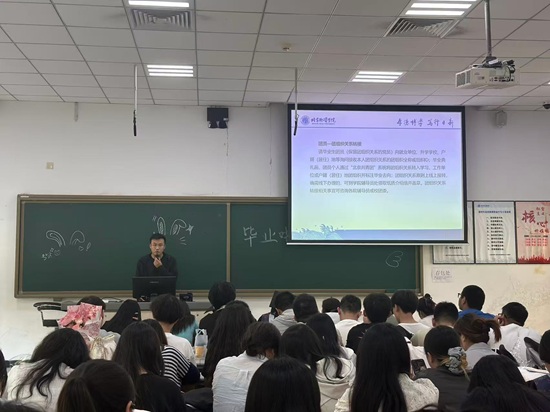 姜涛老师围绕本科生毕业核心事务,以专业且全面的视角,为本科毕业生梳理重要信息。他深入解读毕业证、学位证领取流程,着重强调材料审核的完整性与时效性,提醒毕业生切莫因疏忽而影响毕业进程;在培养计划核查方面,他细致入微地提示大家确认体测达标情况、创新创业学分认定进度,每一项毕业硬性条件都关乎未来发展,不容丝毫懈怠;鼓励毕业生以积极进取的态度完成学业,话语间传递着对学子们顺利毕业的殷切期望。